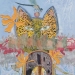 Mixed media, klei, vilt, kant, agaat, acrylverf, inkt.