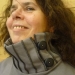 Gevoerde col, katoenen joggingstof, kerriekleur, afgewerkt met zwarte locksteek