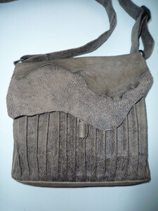 2018Tas met plissé voorkant gemaakt van lamsleer in combinatie met suedine